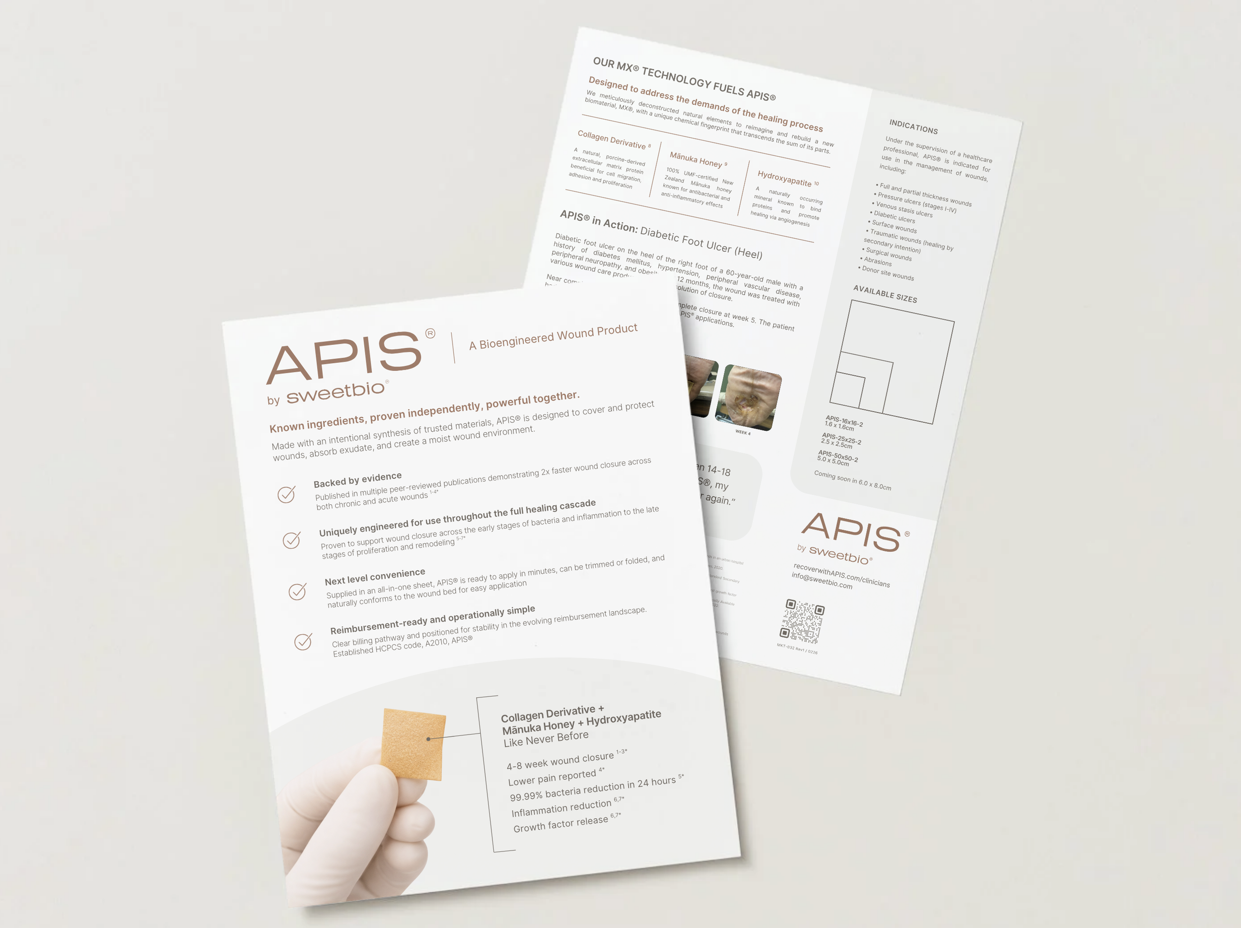 APIS® is made with SweetBio®’s technology, MX™, which addresses the wound's microenvironment by balancing key variables known to heavily impact both early stages (i.e., homeostasis and inflammatory phases) and late stages (i.e., proliferation and remodeling phases) of the wound healing process. (5-7*)